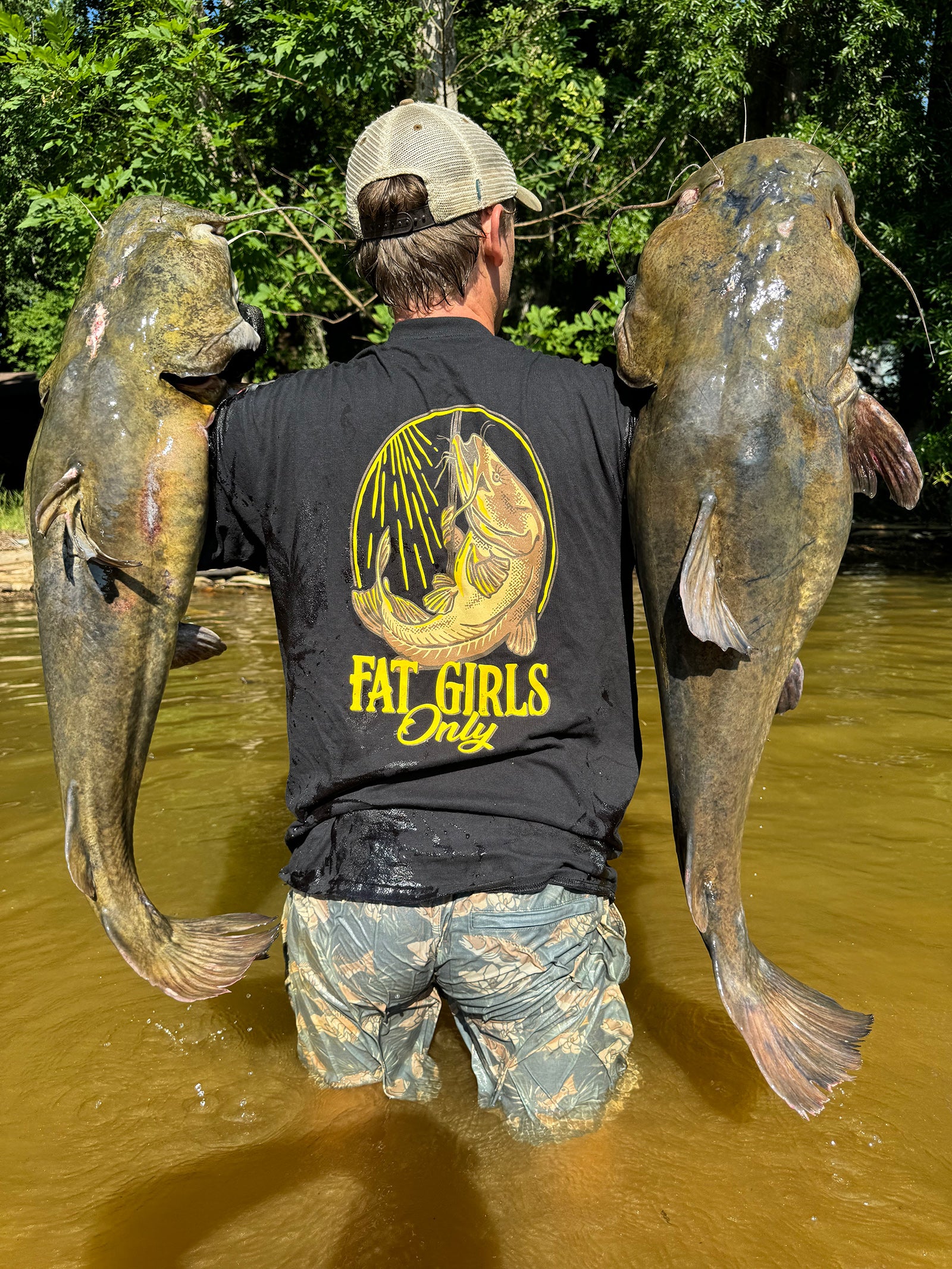 You’re probably thinking “where in the world did this name come from?” It all started on a river bank pulling catfish out with our bare hands around some good buddies. Jokingly, I pulled one out and yelled “fistin fatties baby” and the brand was born.